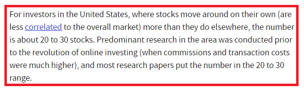 > 그러나 18~30종목이면 개별 종목 위험을 90% 제거할 수 있다고 한다.