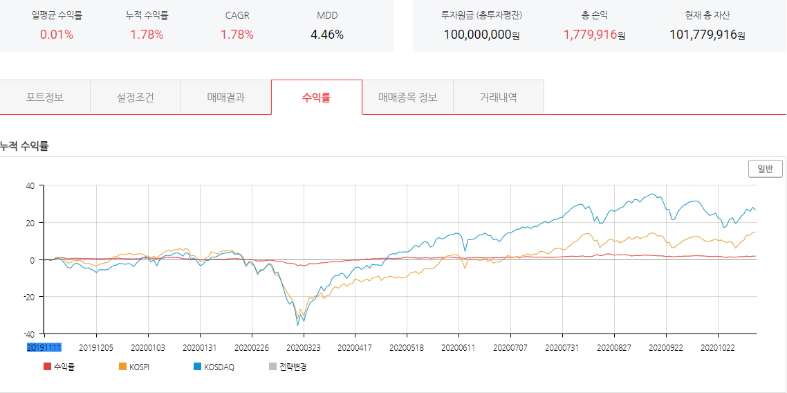 주가는 -41%인데 반해 MDD는 4.46%에 불과하다.